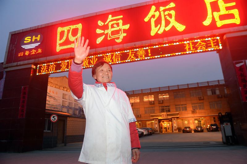 余本銀飯店的顧客大多是來自江蘇、上海、浙江、新疆等地南來北往的過路客,她從來都是真誠地替客人著想,把客人當(dāng)做自己的親人一樣對待。她總是建議顧客點菜要按照人數(shù)所需,不能多點菜,以免造成浪費!叭绻撬膫人吃飯的話,一般我會建議點三四個菜,能吃飽吃好,費用在100元左右!庇啾俱y說。
