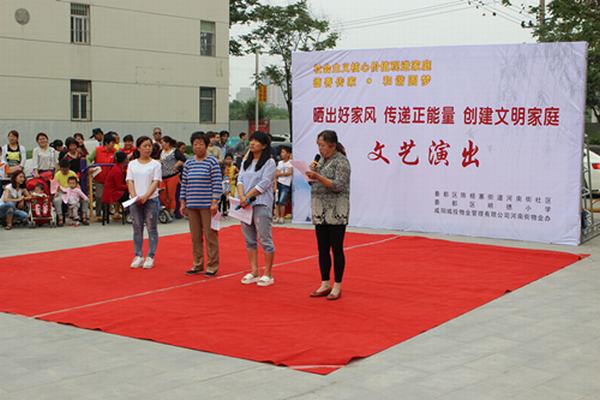 此次匯演,是推進社會主義核心價值觀“六進”活動的重要載體。從三月初,通過從河南街小區(qū)業(yè)主中,征集好家規(guī)好家訓和編寫最美家庭故事的方式,最終甄選確定10戶業(yè)主,在匯演現(xiàn)場分享家法家規(guī),展示家庭“正能量”。在分享的間隙,由舞蹈、歌曲、戲曲等業(yè)主們喜聞樂見的文藝表演穿插其中,使小區(qū)業(yè)主在潛移默化中受到熏陶,增強認可。