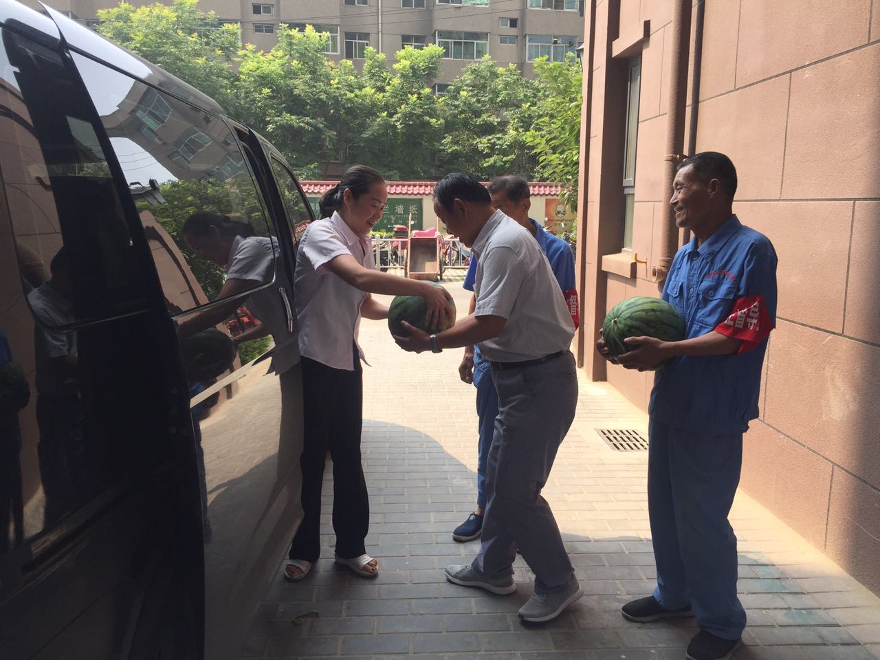 當(dāng)日上午,總經(jīng)理趙明海、工會(huì)主席常紅艷等人一行來(lái)到河南街、安谷苑、九冶、城投時(shí)代進(jìn)行慰問(wèn),向一線職工送去800余斤西瓜。慰問(wèn)組每到一處,親切詢問(wèn)保安保潔的生活情況和工作狀況,叮囑他們要注意防暑降溫,并對(duì)保安保潔近期以來(lái)的勤懇勞動(dòng)表示感激和關(guān)懷之情,叮囑他們?cè)?/FONT>開展“創(chuàng)文”整治工作以來(lái),保潔員隊(duì)伍人員少、天氣熱、任務(wù)重的情況下,在提高小區(qū)環(huán)境質(zhì)量的同時(shí),要做好遮陽(yáng)等保護(hù)措施,注意勞逸結(jié)合,預(yù)防中暑。