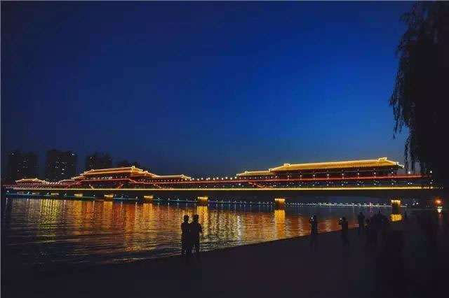 北起渭陽路,南至渭河南岸,橫跨渭河,連通世紀大道的“古渡廊橋”,名字源自關(guān)中八景之“咸陽古渡”,全長748米,寬14米,是全國首座秦建筑風(fēng)格、雙層人行景觀廊橋,自建成以來立即成為我市地標性文化景觀之一。[ 詳細內(nèi)容